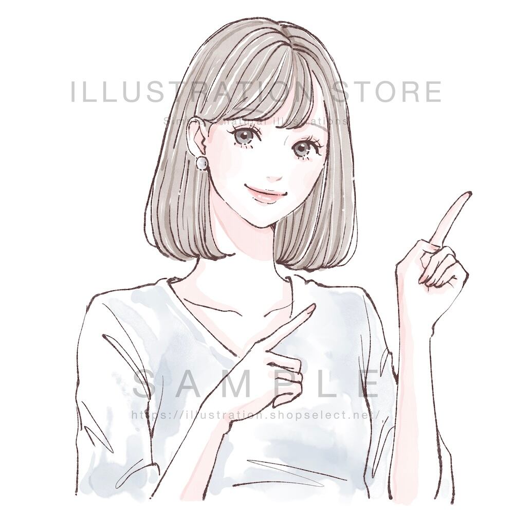 両手で指をさす女性